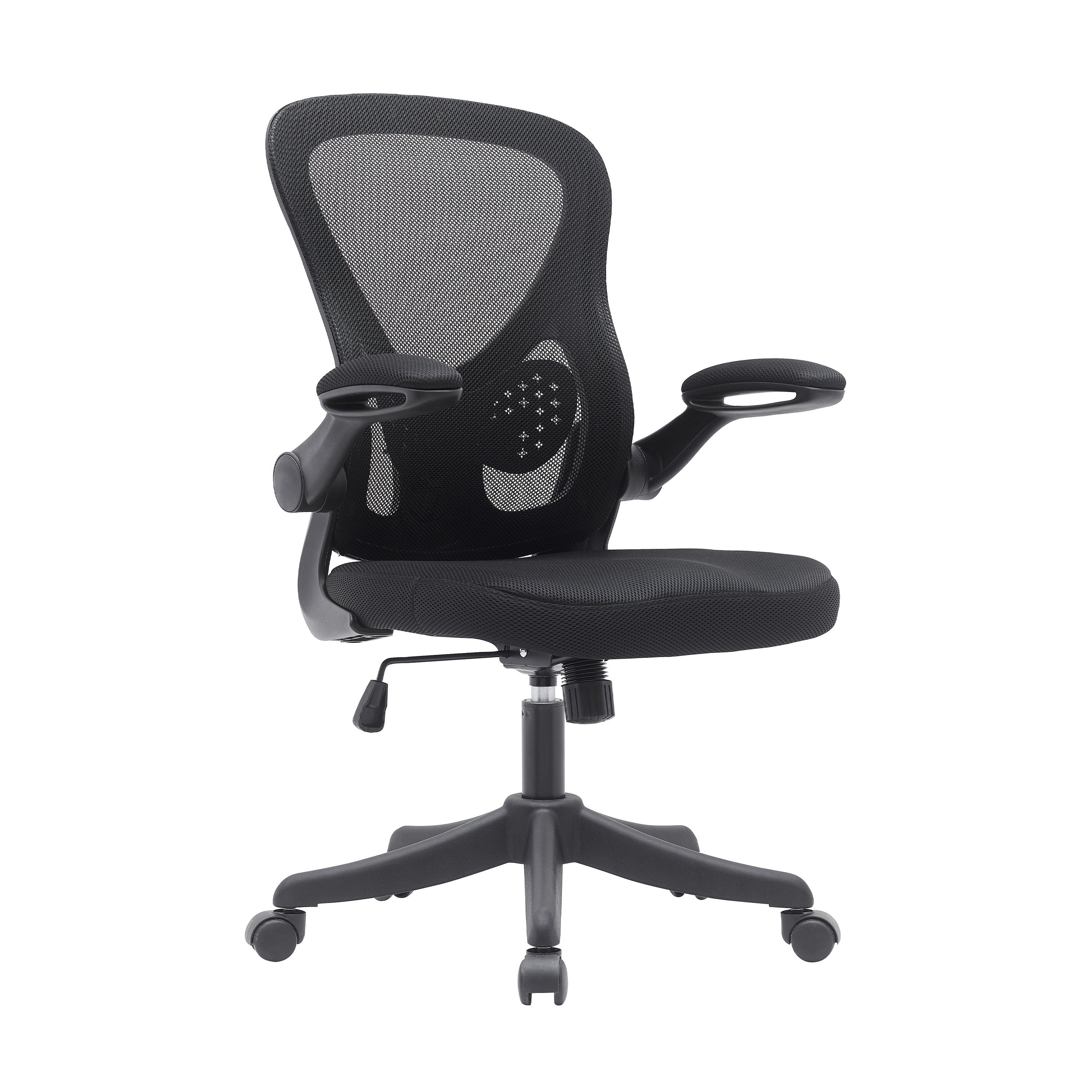 Techni Mobili Black Mesh Office Chair with Lumbar Support and Flip-Up Arms Techni Mobili Black Mesh Office Chair with Lumbar Support and Flip-Up Arms Techni Mobili Black Mesh Office Chair with Lumbar Support and Flip-Up Arms